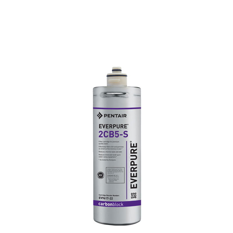 The Everpure 2CB5-S features fine filtration for high quality ingredient water, and carbon that reduces chlorine as well as off tastes and odours. Chlorine destroys aromatics and oils, increasing a beverage’s acidity so it's important to remove it. This filter also contains a scale inhibitor that reduces the build-up of scale that can cause increased maintenance costs. The 2CB5-S is suitable for low hardness areas and when space is limited and a compact filter is required. This filter fits all Everpure heads and is quick change for each servicing. 2CB5-S is NSF Certified under NSF Standard 42.